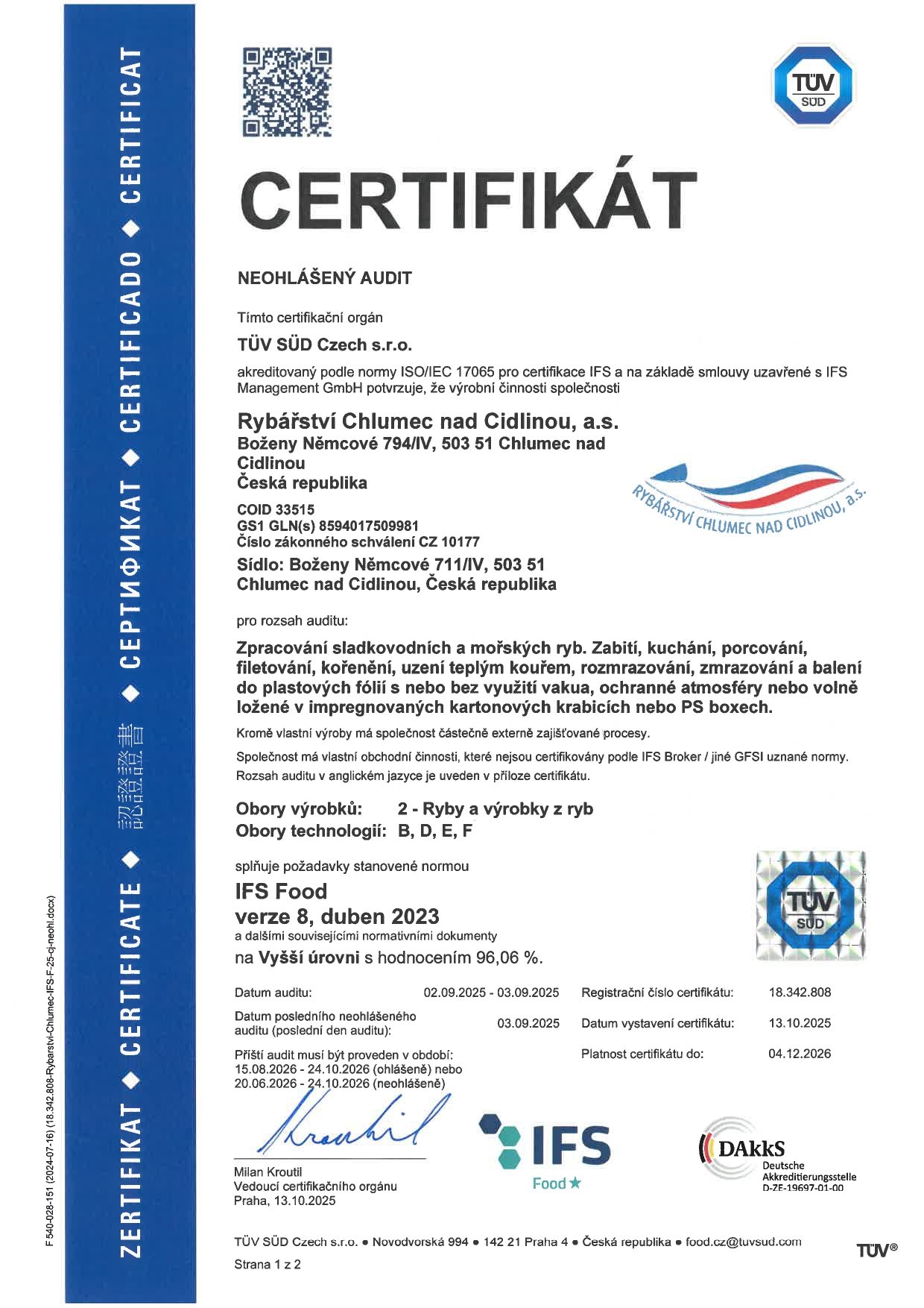Výroba probíhá podle správné výrobní a hygienické praxe, která podléhá každodenním kontrolám. Klíčová je především rychlost zpracování sladkovodních a mořských ryb, použití špičkové technologie a zkušený personál. To vše je v naší zpracovně samozřejmostí.